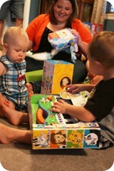 Among other toys, he got a tricycle for his birthday from us. I bought some fun, yet education, Geranimals toys for Wyatt but Justin picked out a flashy red Radio Flyer tricycle that matches the wagon he got for Christmas. His little legs are still a big too short to pedal it, but he likes to sit on it and honk the horn.