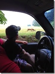 Since the loop is off the real road and is one-way, we let Wyatt ride up front with us. He loved sitting on his daddy’s lap and looking at the animals.
